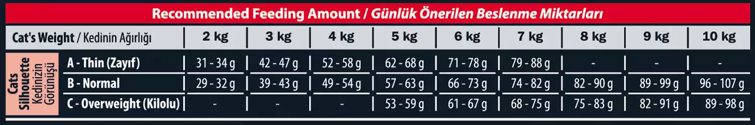+ Đối tượng: Thức ăn khô cho mèo với công thức cân bằng và hoàn chỉnh dành cho giống mèo trưởng thành. Dành cho tất cả giống mèo trên 12 tháng tuổi. Thể trọng từ 2kg - 10kg.